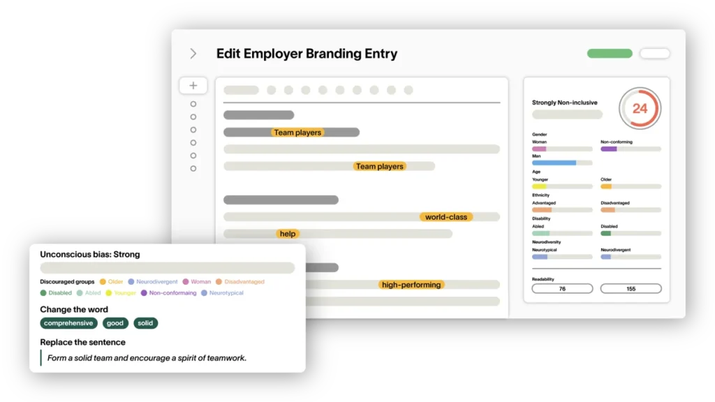 Create inclusive content with a best-in-class inclusive text editor; move beyond just gender decoding.
