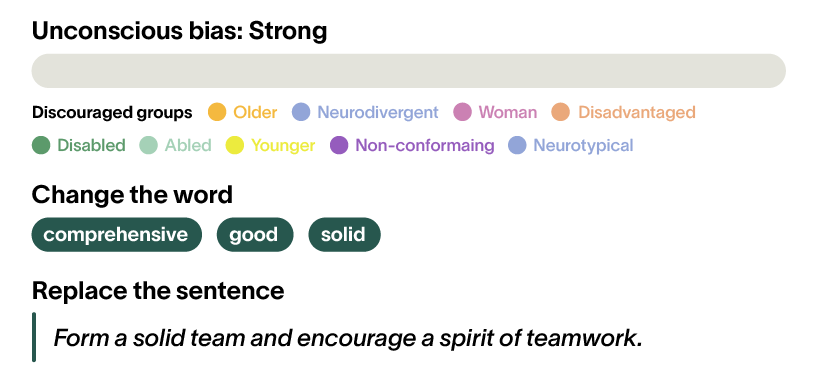 “We are really impressed with the sentence rewrite feature! It is providing more in-depth feedback on the language we are using and saving us time in creating truly inclusive content for our internal communications.”